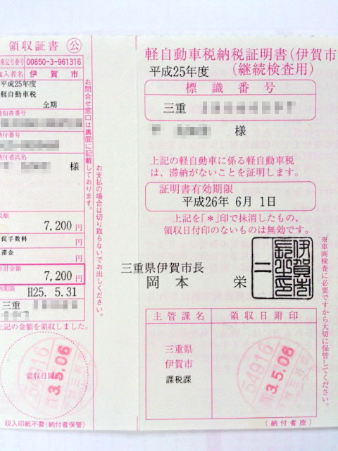真ん中)軽自動車税納税証明書